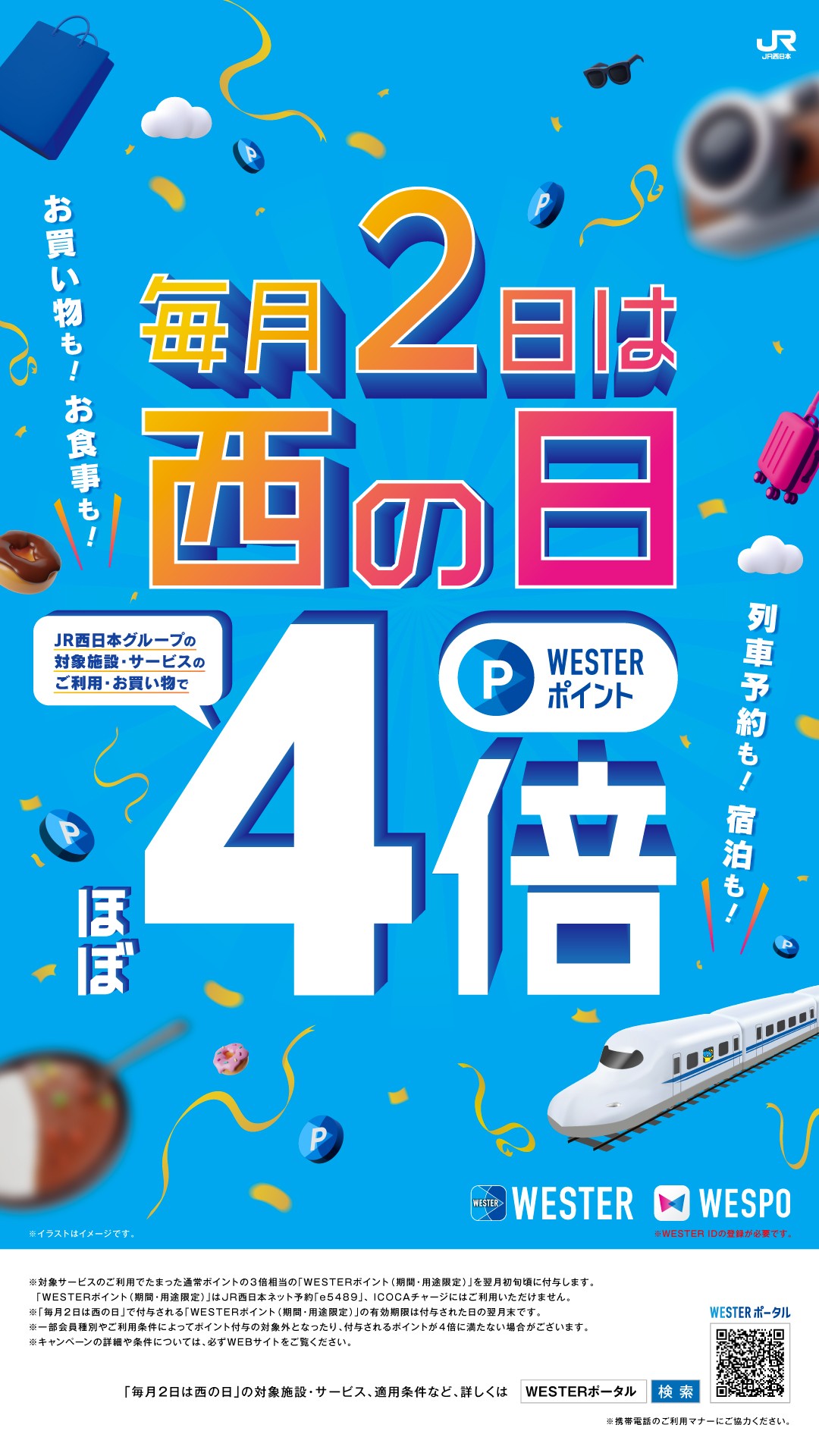 ・实施概要每月2日利用JR西日本各加盟店实施WESTER积分4倍授予