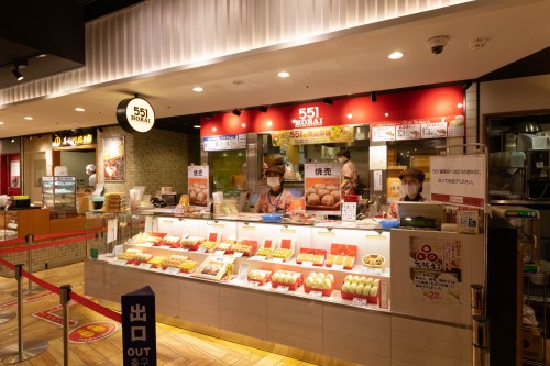 位于JR新大阪站检票口内的551HORAI。除了大阪特产的经典·551个猪肉包之外,店内厨房还将美味、虾、烤饺子蒸、烤饺子,提供刚做好的商品。也有最适合带走远方的冷藏猪肉包。